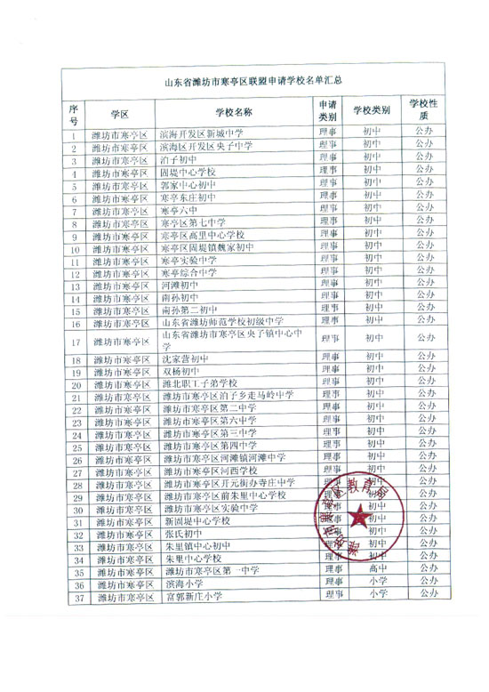 关于批准潍坊市寒亭区教育局所辖191所中小学校申请加入全国学校体育机器人联盟的批复